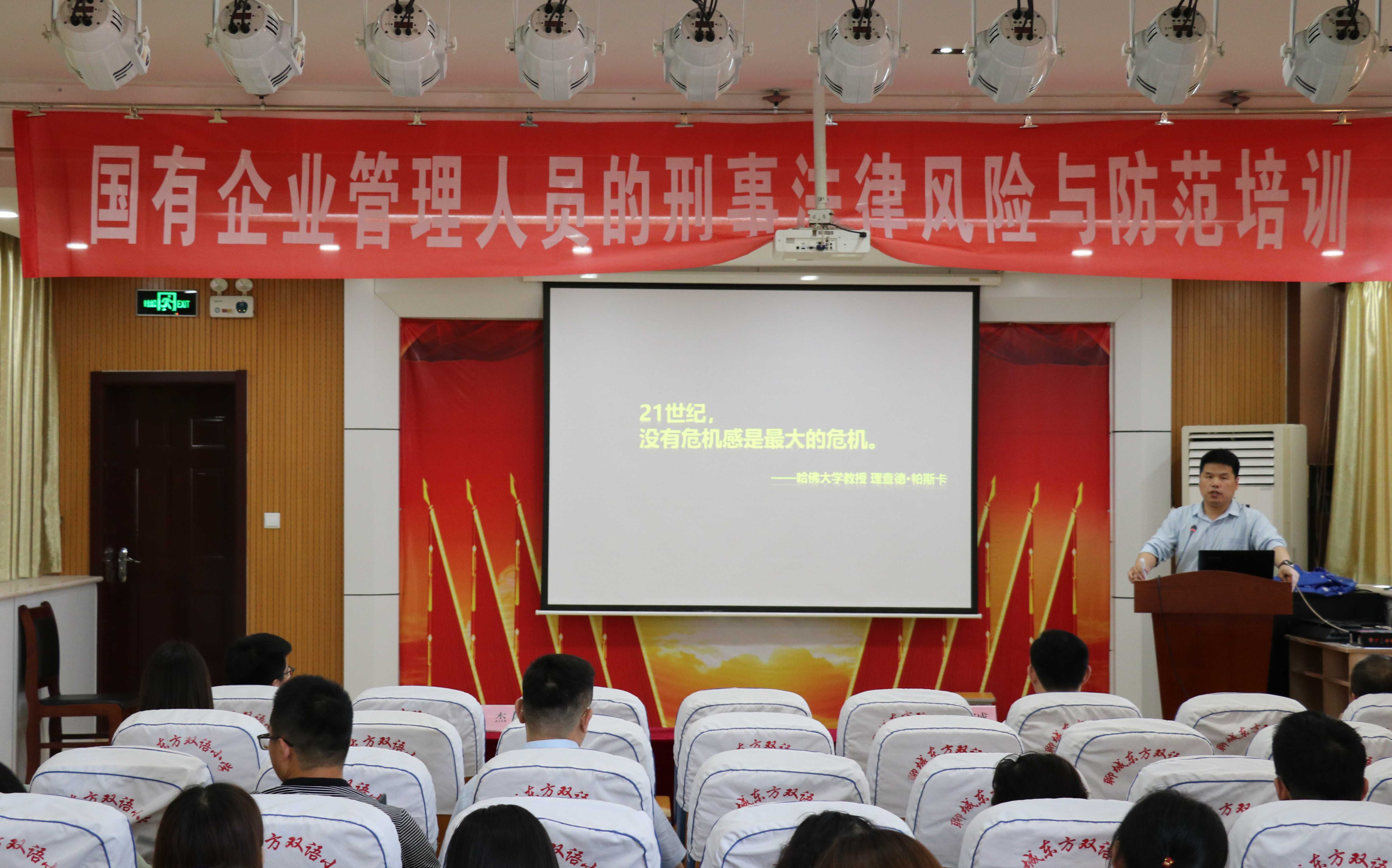為加強(qiáng)國有企業(yè)管理人員履職刑事法律風(fēng)險防控,提升國有企業(yè)管理人員風(fēng)險識別能力和管控能力,推進(jìn)法治國企建設(shè),市財金公司聯(lián)合山東萬航律師事務(wù)所開展了以“國企管理人員的刑事法律風(fēng)險與防范”為主題的第二期法治講堂,公司領(lǐng)導(dǎo)班子、各部門及子公司共計150余人參加了培訓(xùn)。