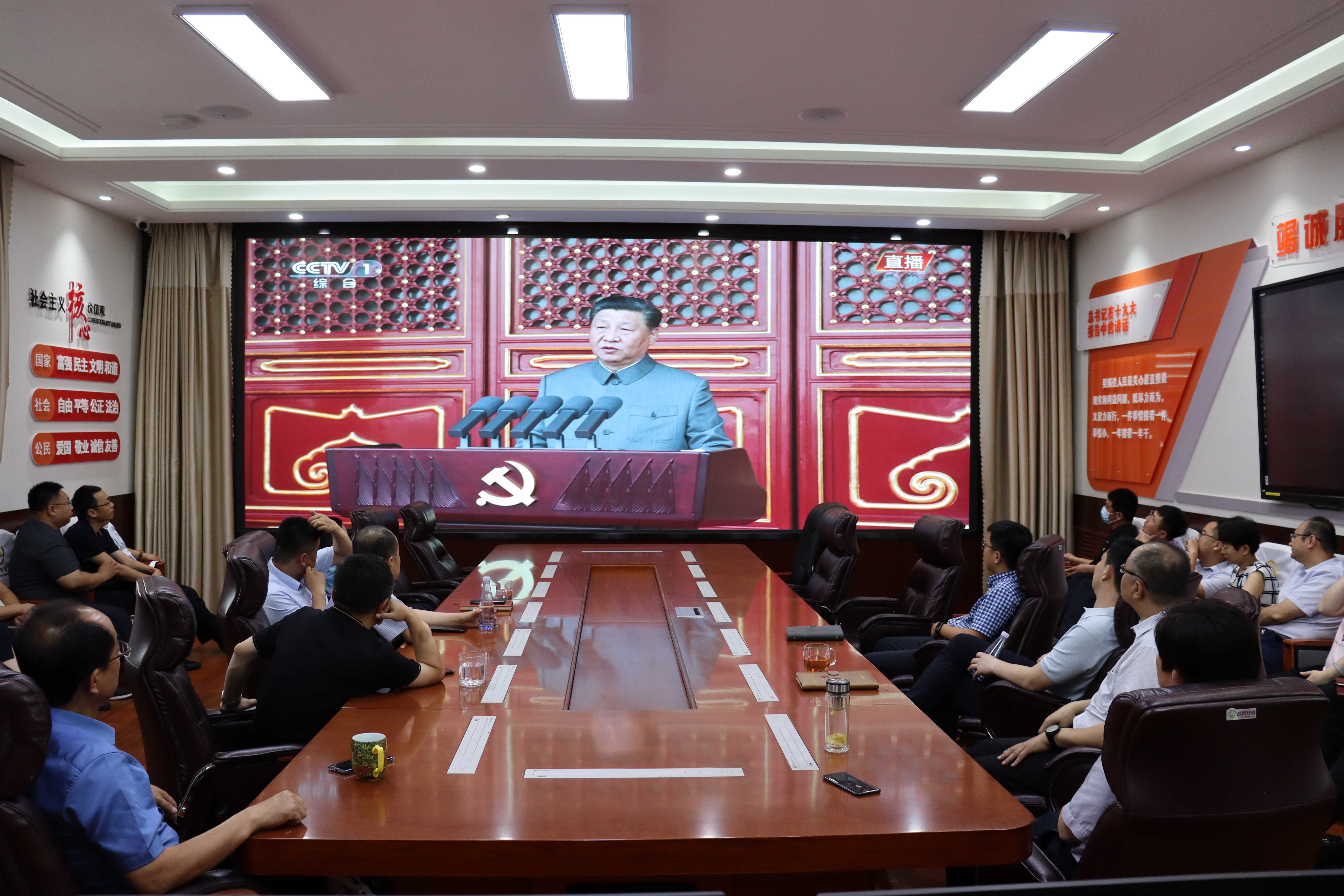 7月1日上午8時,慶祝中國共產(chǎn)黨成立100周年大會在北京天安門廣場隆重舉行,中共中央總書記、國家主席、中央軍委主席習近平發(fā)表重要講話。市財金公司及各子公司組織干部職工集中觀看大會直播。