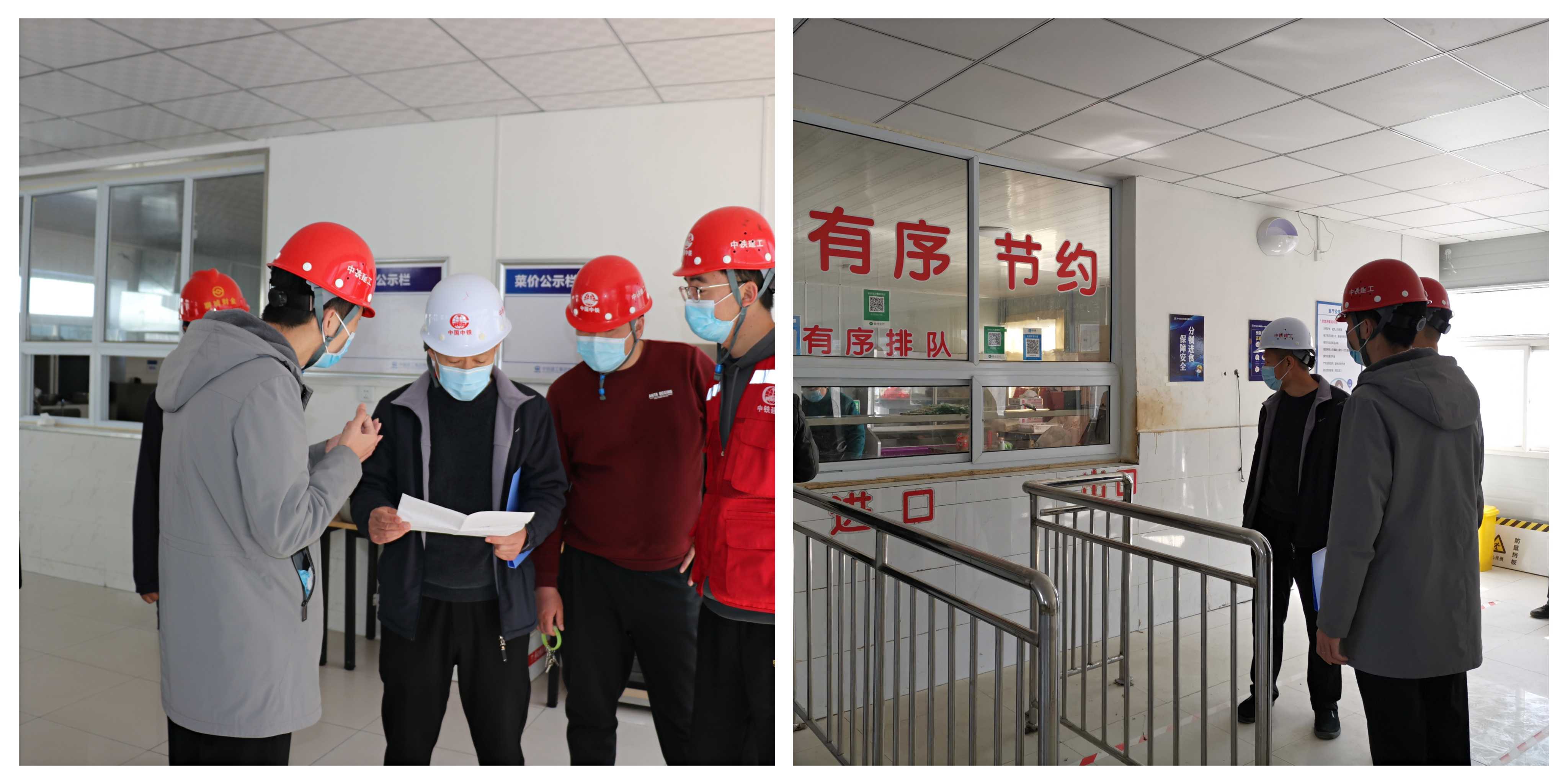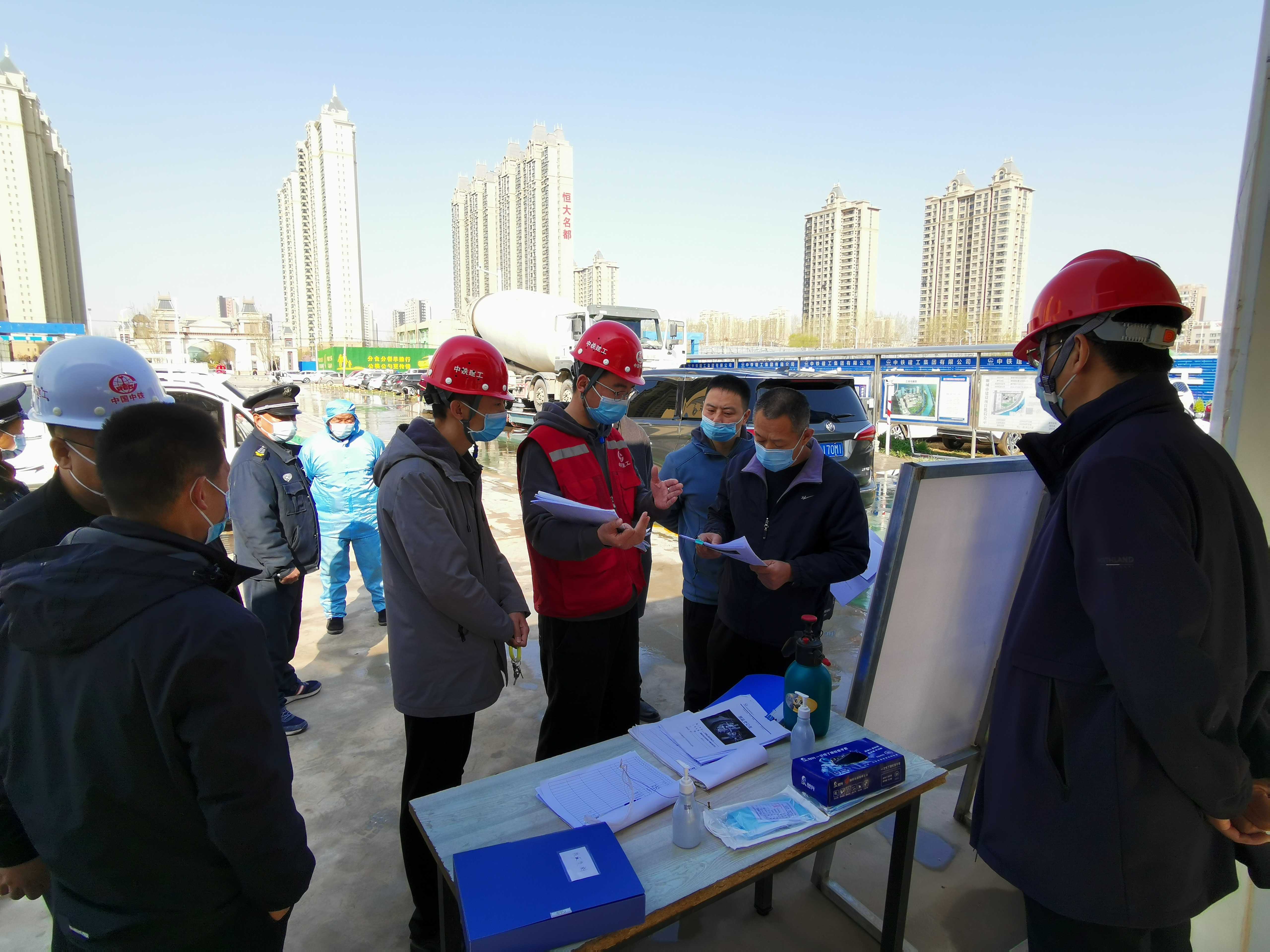 檢查組首先聽取了各項目負責人關(guān)于項目現(xiàn)場疫情防控工作的情況匯報,隨后認真查看了外來人員和車輛進出登記表、管理人員每日健康狀況表、場地消毒記錄等材料,檢查了防疫物資儲備情況和餐廳用餐情況。