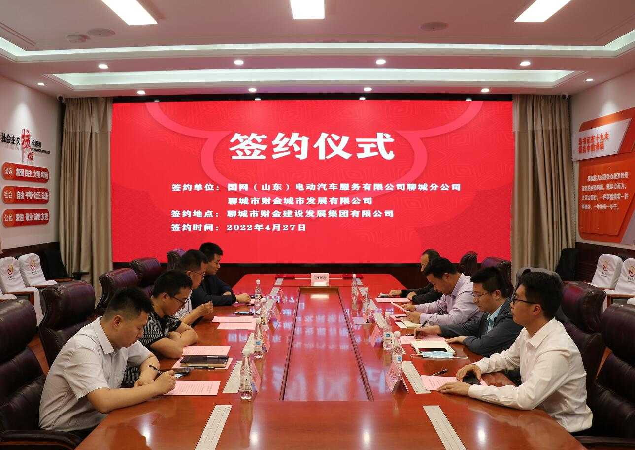4月27日,聊城市財金城市發(fā)展有限公司與國網(wǎng)(山東)電動汽車服務(wù)有限公司聊城分公司在市財金集團(tuán)簽署《戰(zhàn)略合作協(xié)議》,國網(wǎng)(山東)電動汽車服務(wù)有限公司聊城分公司總經(jīng)理展云峰,市財金集團(tuán)總經(jīng)理助理、城市發(fā)展公司董事長王躍現(xiàn)場簽約。
