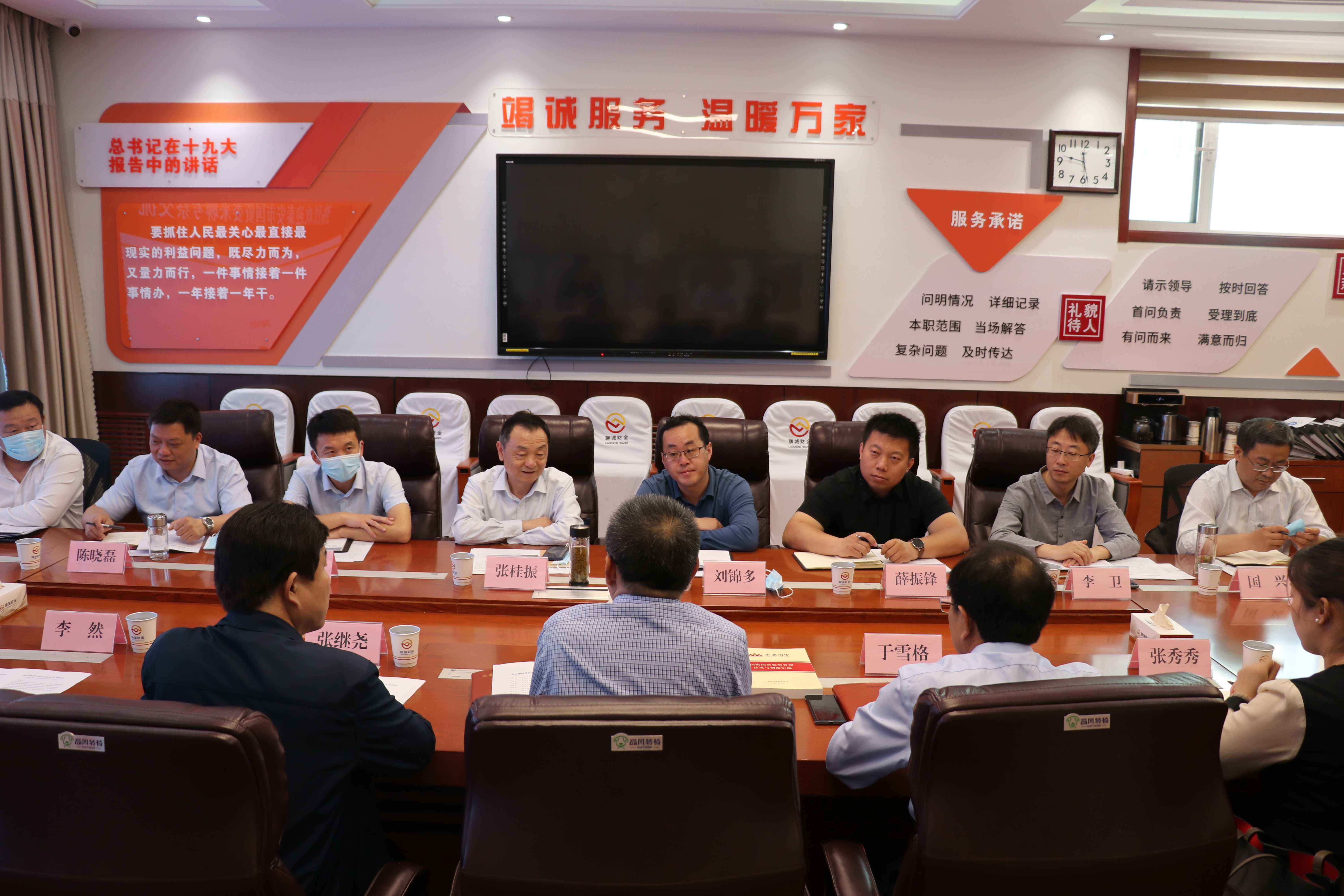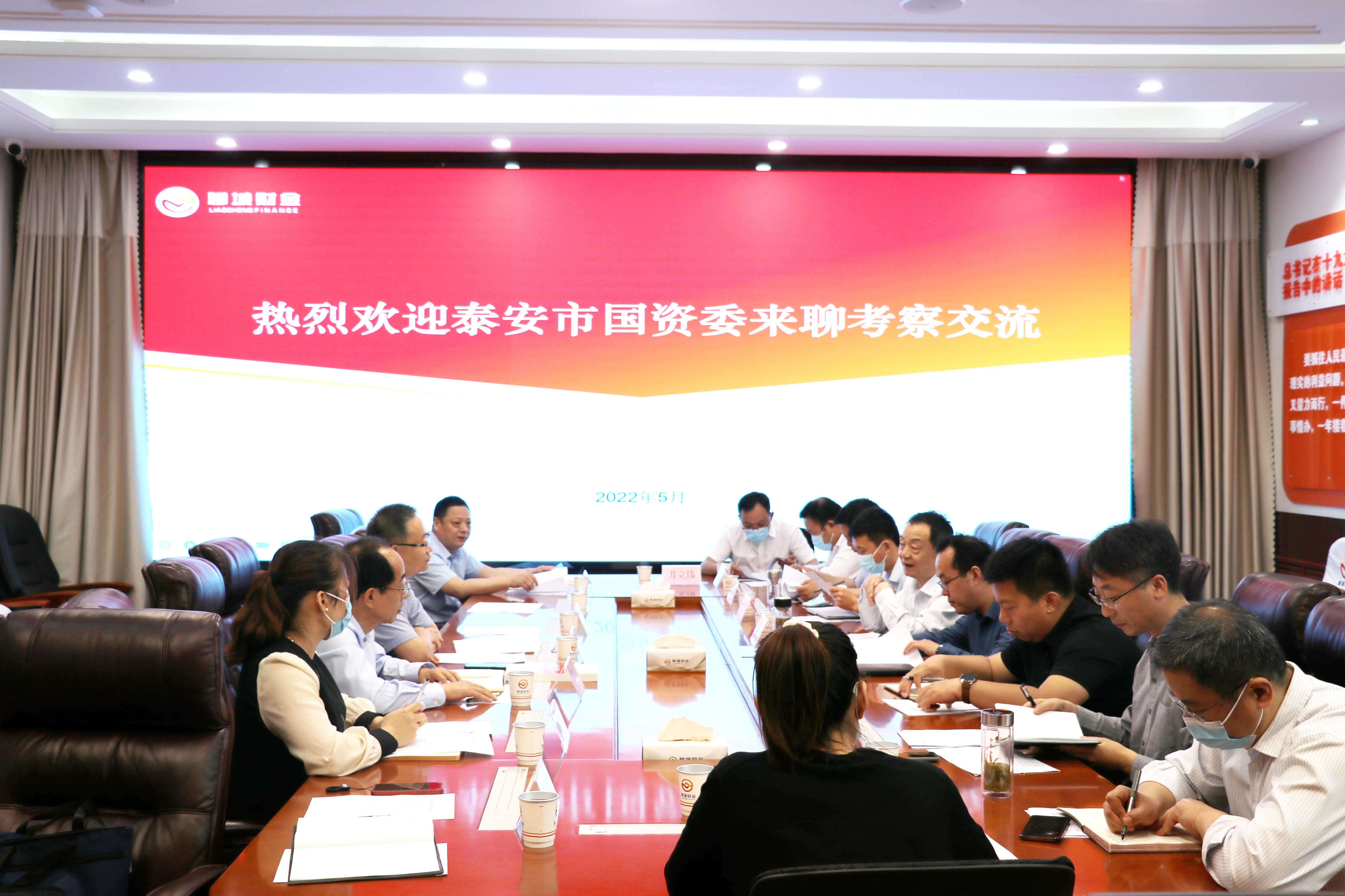 5月19日上午,泰安市國資委黨委委員、副主任張桂振一行蒞臨聊城考察交流國企改革工作,座談會(huì)在市財(cái)金集團(tuán)103會(huì)議室召開,會(huì)議由聊城市國資委黨委委員、副主任李樹新主持,集團(tuán)黨委書記、董事長(zhǎng)張繼堯,黨委副書記、董事、總經(jīng)理于雪格,聊城市國資委有關(guān)科室負(fù)責(zé)人參會(huì)。