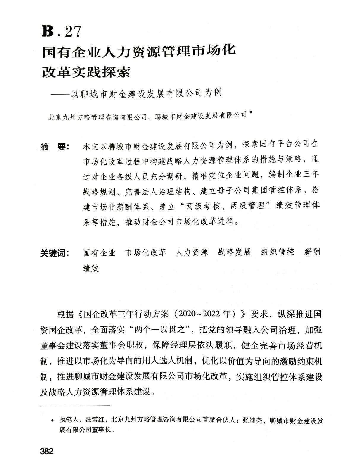 近日,中國(guó)人事科學(xué)研究院發(fā)布《中國(guó)企業(yè)人力資源發(fā)展報(bào)告(2022)》,聊城市《國(guó)有企業(yè)人力資源市場(chǎng)化改革實(shí)踐探索案例---以聊城市財(cái)金建設(shè)發(fā)展集團(tuán)有限公司為例》入選。該報(bào)告屬于《人力資源藍(lán)皮書》系列,由中國(guó)人事科學(xué)研究院出版(隸屬于中華人民共和國(guó)人力資源和社會(huì)保障部),是我國(guó)干部人事改革、人才資源開發(fā)、人力資源管理和公共行政學(xué)研究的唯一國(guó)家級(jí)專業(yè)研究機(jī)構(gòu),是中央人才工作協(xié)調(diào)小組辦公室命名的“人才理論研究基地”。此報(bào)告為年度出版,匯集了央企和地方國(guó)企、知名民營(yíng)企業(yè)和外資企業(yè)在人力資源開發(fā)與管理、人事制度改革創(chuàng)新等方面的實(shí)踐探索,為我國(guó)企業(yè)人力資源開發(fā)和管理工作提供了借鑒,為政府政策的制定提供了參考。2022年度中國(guó)人力資源發(fā)展報(bào)告共入選7篇案例,除市財(cái)金集團(tuán)為地市級(jí)國(guó)有企業(yè)外,其余均為軍工、能源、運(yùn)輸類央企。